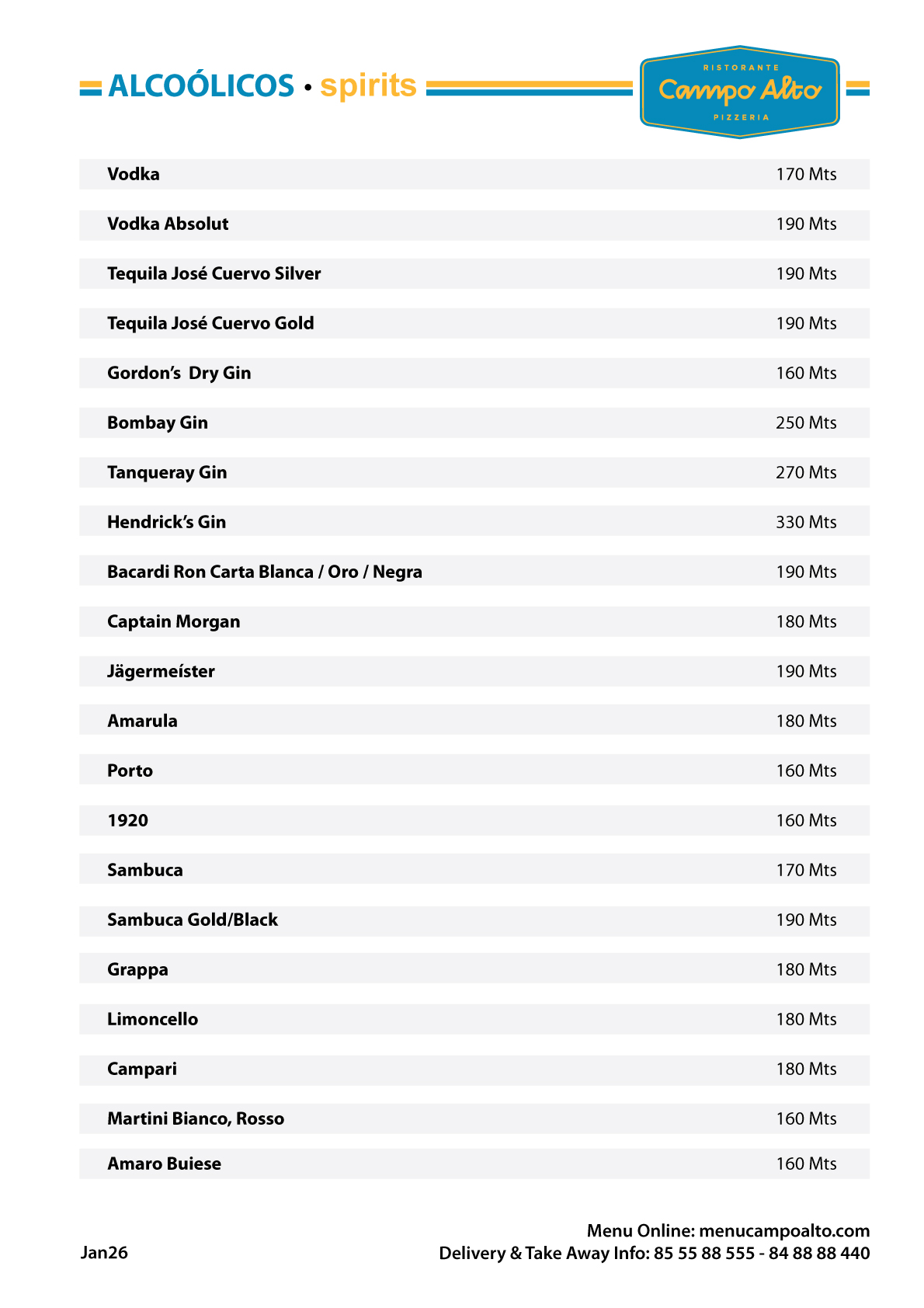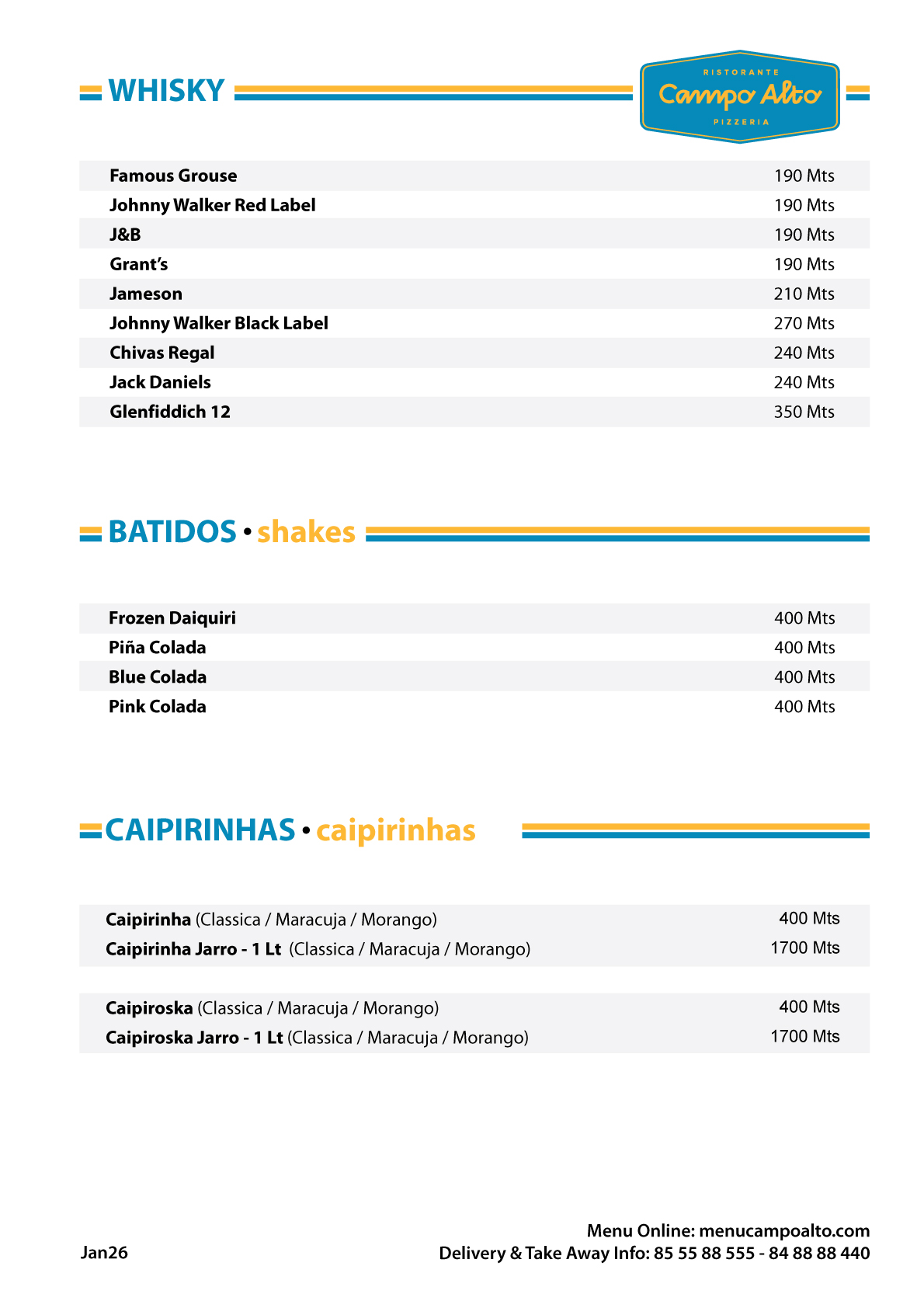 Menu Campo Alto 2026